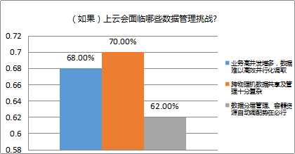 70调查对象认为,上云可能会造成跨物理数据共享问题,使数据管理更加复杂。医疗信息化发展30年,不同时期、不同应用的数据存储方式有所不同,新来的云存储作为其中的全新模式,将会给信息管理人员带来新的问题。