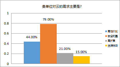 74%调查对象认为,高可靠是云选型的重要因素;52%调查对象认为,运维简便非常重要;46%调查对象认为高性价比是选择云存储的重点;42%调查对象认为高性能是选择云的考量因素。