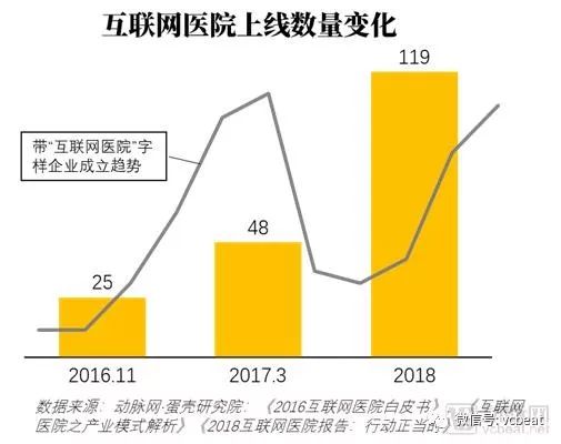 动脉网·蛋壳研究院据公开信息统计 ,截至 2018 年 11 月,全国落实运营的互联网医院已经扩充到约119家(完整清单在报告中公布),分布在全国25个省市,带有“互联网医院”字样的企业正以每周两家的速度快速增长。