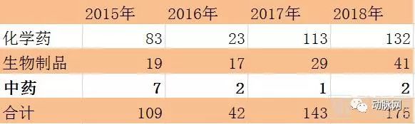 根据NMPA(原CFDA)的年度审评报告,国药监通过的中药NDA(新药生产上市注册申请)数量占比极小,2017年仅1个新药获批,而化学药有113个。2018年CFDA也只批准了2个中药新药上市,分别为关黄母颗粒和金蓉颗粒;