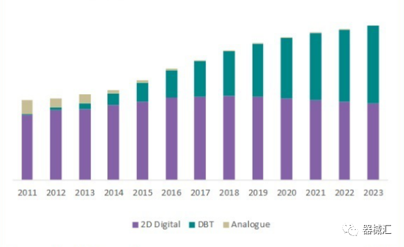 在过去的两年中,DBT的应用使乳腺X线摄影市场经历了快速增长。在早几年前引入报销制度后,这一趋势在美国尤为明显,2017年达到顶峰。