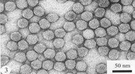 病毒的尺度是纳米级的(目前动物细胞的尺度为微米级),典型的病毒由蛋白质外壳和内部的遗传物质核酸构成。理论上,病毒可以在合适的条件下形成结晶体永远存在,当然更多情况下这只是暂时的一种状态。人和动物体内形成的许多病毒粒子集合形成了光学显微镜下可见的包涵体,无囊膜病毒形成的包涵体的主体部分也可以认为是病毒晶体的集合。