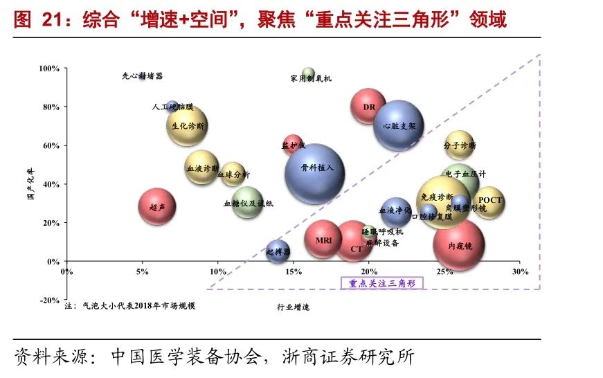 等位于“重点关注三角形”区域的细分领域,处于高速发展期、进口替代空间大,需重