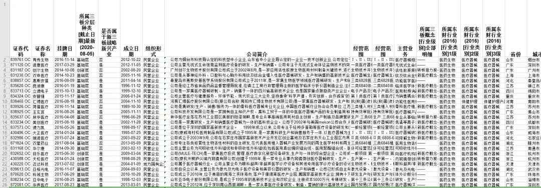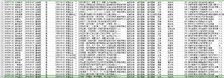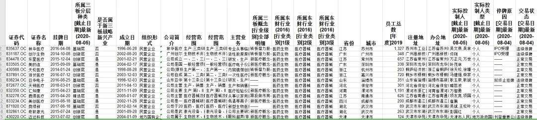 林华医疗、创尔生物、东星医疗、美的连(已经申报IPO)、天松医疗(已经申报IPO,但终止了)、浙伏医疗(申报精选层)、亚华电子(摘牌)、天朔医疗、汇知康、鹿得医疗、美创医疗(准备摘牌,大概率申报IPO)、奥绿新、奇致激光