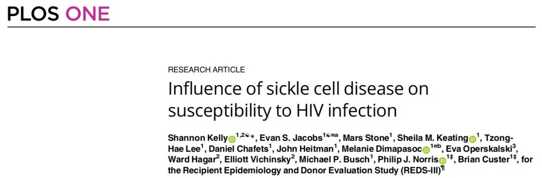 不仅如此,2020 年 4 月,美国加州旧金山 Vitalant 研究所的 Shannon Kelly 及其同事在国际知名生物学杂志 PLOS ONE 上发表题为:Influence of sickle cell disease on susceptibility to HIV infection 的研究论文。该研究表明,镰刀型细胞贫血症患者感染HIV的可能性更低。