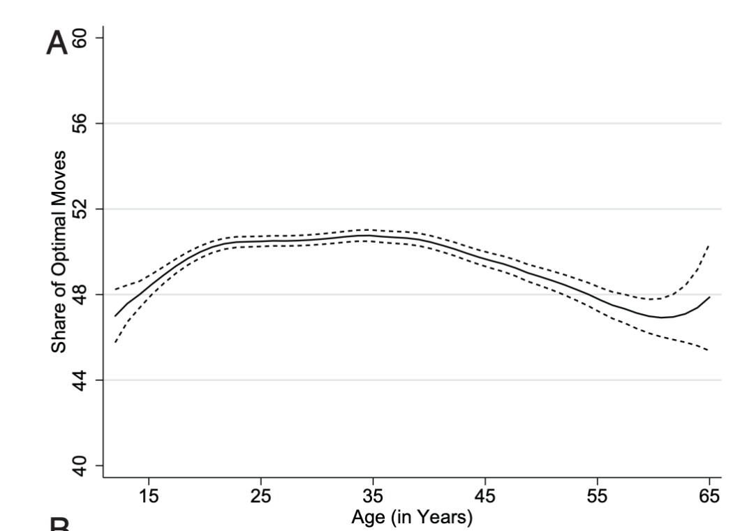 近日,来自慕尼黑大学的研究人员及其合作者,通过对 1890-2014 年 4294 名职业象棋选手进行的 24000 场专业比赛数据进行分析,发现人类大脑的认知功能在 35 岁会达到巅峰,随后一路下降,并且45 岁之后下降的速度开始明显越来越快。