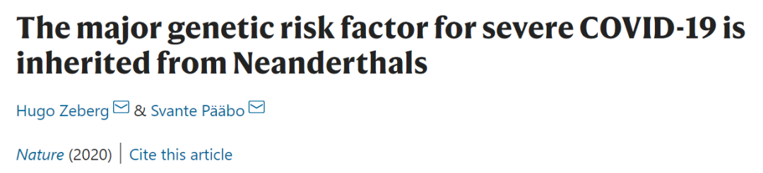 最新一期 Nature 杂志提前上线了德国马克斯普朗克进化人类学研究所的题为:The major genetic risk factor for severe COVID-19 is inherited from Neanderthals 的研究论文。