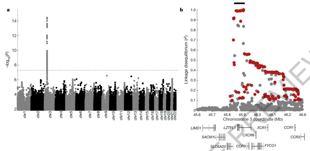 之前的研究表明,新冠肺炎发展为重症的主要遗传风险因素是在3号染色体上的基因簇,这项发表在 Nature 的最新研究则证实了这种风险是由从尼安德特人那里遗传的大约50 kb长度的基因组片段所引起的,这一遗传风险在南亚和欧洲人群中最高,而在东亚和非洲则几乎没有。