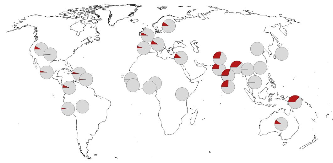 进一步分析表明,尼安德特人的这一新冠重症核心风险基因片段在南亚人群中的出现频率为30%,在欧洲为8%,美洲平均为4%,在东亚和非洲则几乎没有。