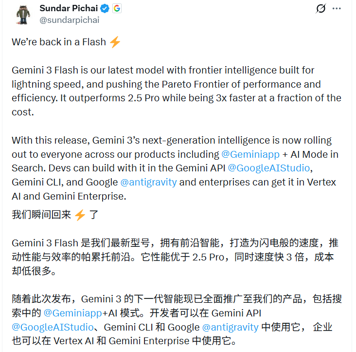 今日零点,谷歌正式发布了 Gemini 3 Flash。至此,Gemini 3 家族成为完全体:Flash、Pro和Deep Think。