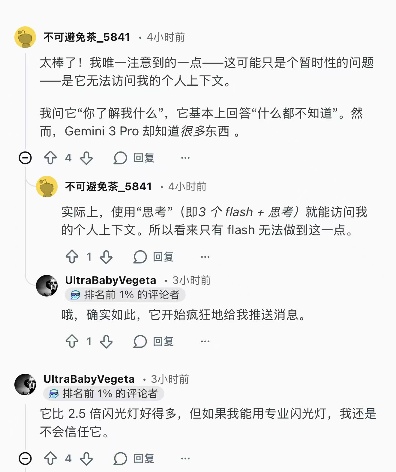 - Flash 默认不读取个人上下文,但开启「思考」后可解决;