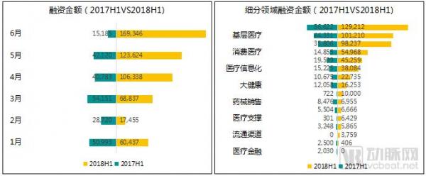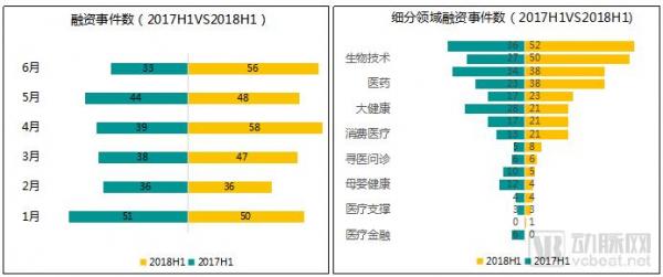2017H1VS2018H1:医疗器械、生物技术融资活跃度上升,医疗金融、母婴健康融资收缩