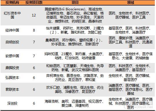 红杉、经纬、启明最活跃,生物技术、消费医疗、科技医疗领域最受追捧;