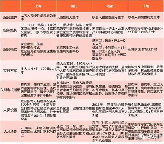 厦门则以大医院专科医师负责诊断、家庭医生负责跟踪治疗、健康管理师进行健康教育的“三师共管”结构,通过家庭医生工作站和慢性病防治中心等形式提供签约服务。